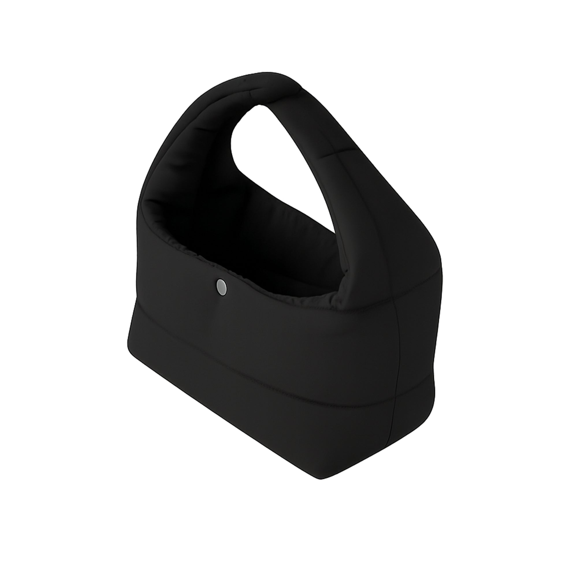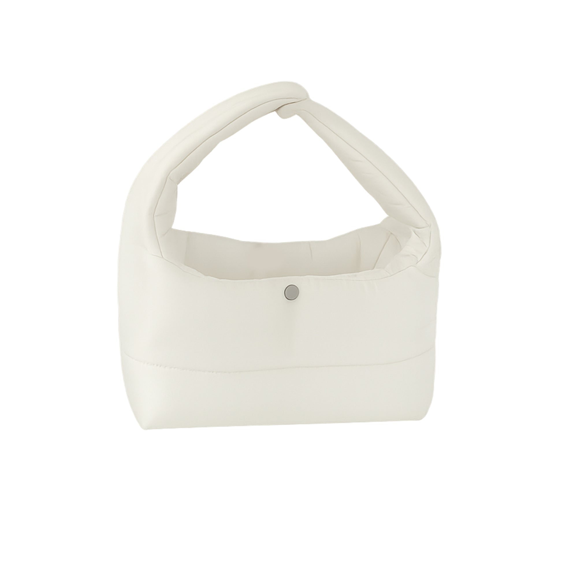 This unisex bag comes in Meringue White or Caviar Black, with a little pocket inside to keep your keys, your lip balm and probably a coin you'll never use. Closes with snap buttons, not a zip.